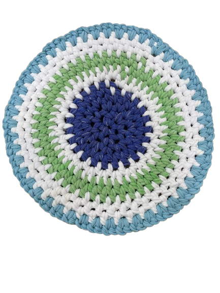 手編みマット(丸形青系)
