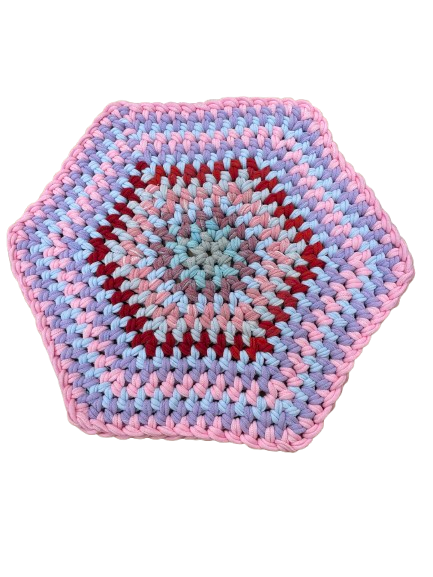 手編みマット(六角赤系)